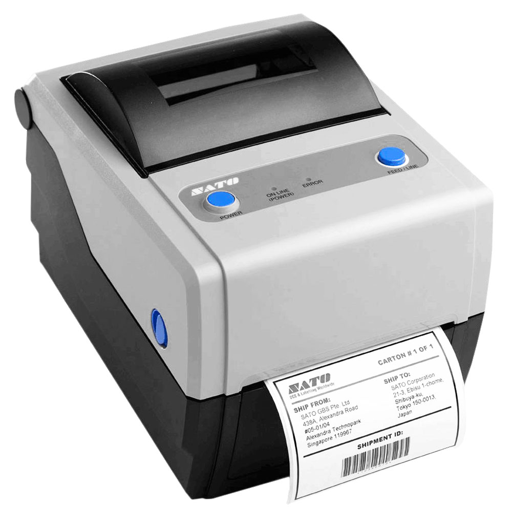 SATO CG408TT; Термотрансферный; 203 dpi; Макс. ширина печати: 105 мм; Скорость печати: 100 мм/сек; 4 МБ Flash / 8 МБ SDRAM; USB, RS-232