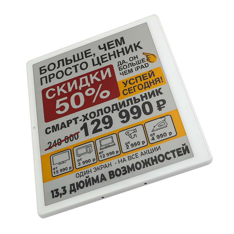 Электронный ценник Meferi label / 13.3"" / E-ink / 980*680 / 4 цвета / BLE / CR2450 / белый